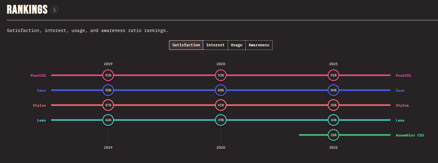 보다시피 전처리기 중 Sass의 순위는 꽤 높다.